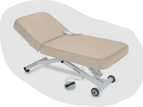 We need a new table for the ADA room. This Earthlite Ellora table comes with a hydraulic lift, manual tilt, and is wider for those with mobility issues and special needs.